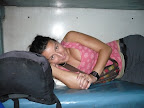 Der zweite Zug war dann ein Sleeperwagen und es war schon bisschen ungewohnt. Auf jeder Seite waren 3 Betten, das mittlere konnte man wegklappen, so dass ale auf dem unteren sitzen kann. Vorher hiess es dann, das oberste ist das beste. Wir hatten natuerlich beide die untersten. Aber es war trotzdem in Ordnung. Habe mehr oder weniger gut geschlafen und getraeumt, ich waere auf der Ostsee auf einem Bott. Hat naemlich ziemlich geschaukelt. Auch dieser Zug war total puenktlich.
